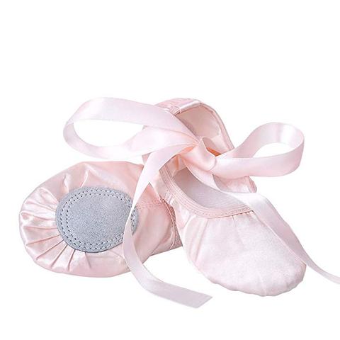 Sapatilhas rosa de balé para meninas, sapato de dança do balé com solado de cetim chinelos baixos